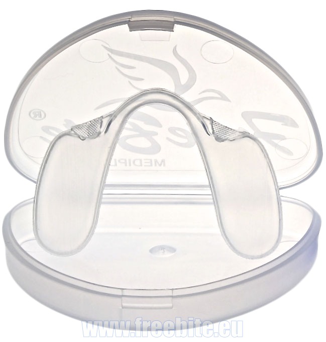 The working principle of the FreeBite is that posterior teeth always touch it first. From that first contact the filling is displaced until all side teeth are supported. The front teeth do not contact anything, since that might result in an avoidance reflex inducing muscle tension. In that sense, the FreeBite offers the opposite of what in most cases is causing the problem: Emphasized posterior contact, rather than lack thereof. However, this is a self-adjusting posterior contact, air-suspended and soft on the FreeBite air, balancing and supporting on the FreeBite balance.
